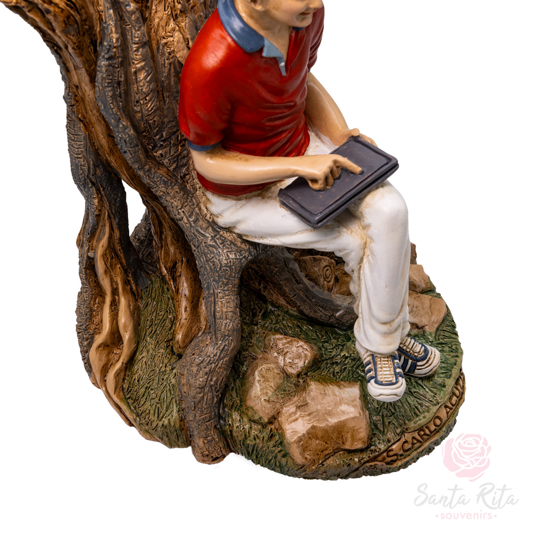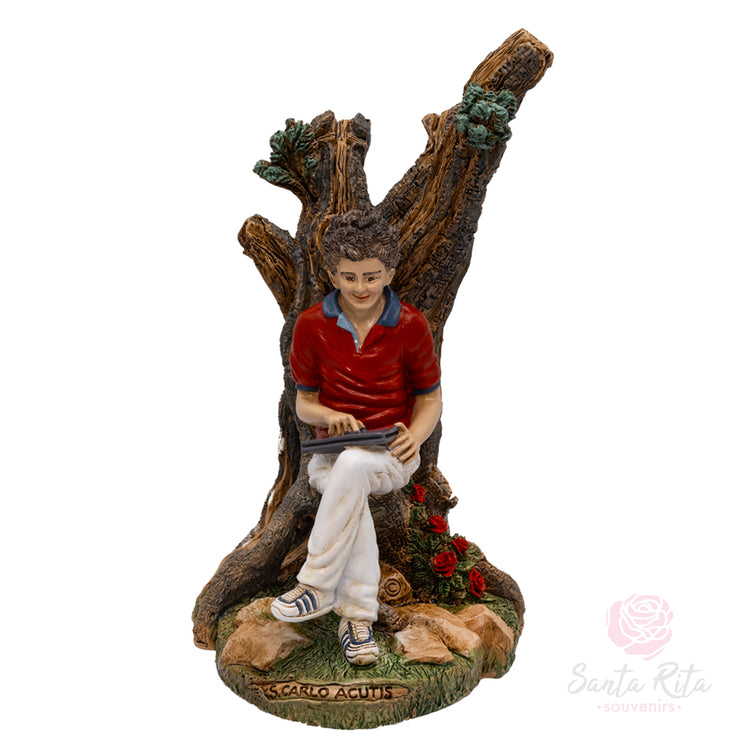 Scultura San Carlo Acutis Sotto Albero 24cm Maestro Cassetta Resina Marmo