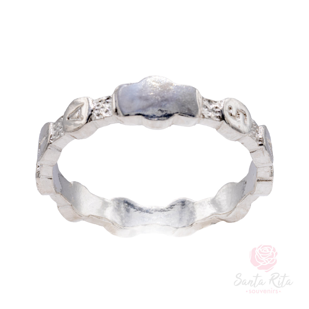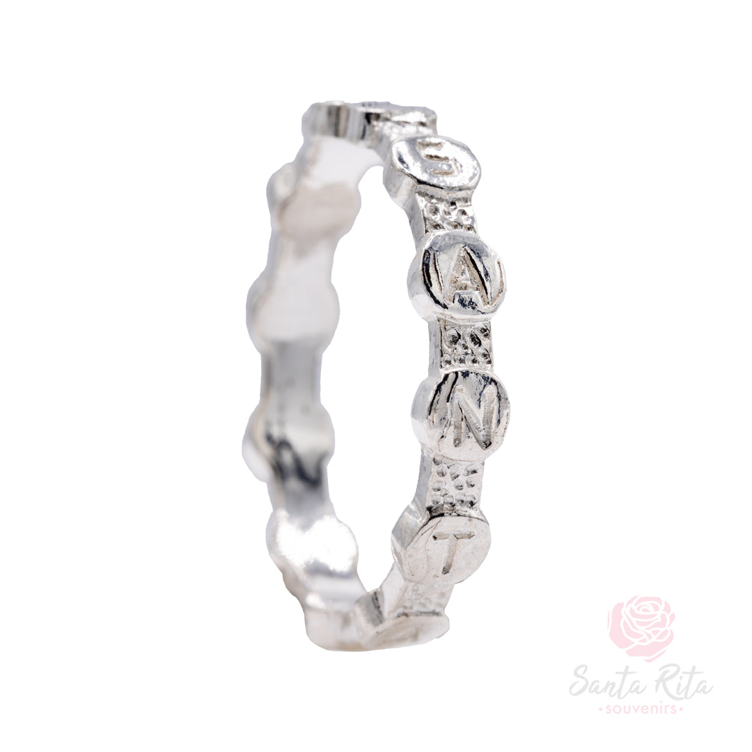 Realizzato con la maestria dell'oreficeria italiana, questo anello rappresenta l'incontro perfetto tra arte, fede e funzionalità. Le piccole protuberanze lungo la circonferenza fungono da grani del rosario, permettendo di recitare le preghiere utilizzando il tatto, mentre la scritta 'Santa Rita' ricorda costantemente la protezione della santa delle cause impossibili. Un modo innovativo di mantenere un contatto costante con la propria fede durante tutta la giornata.