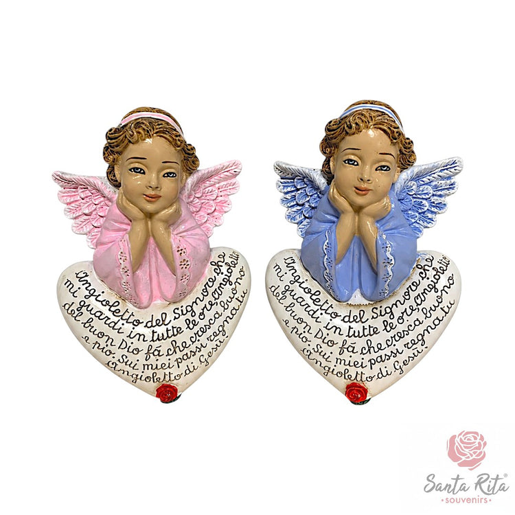 Angelo Custode su Cuore 13,50cm Maestro Cassetta Resina Marmo Dipinto a Mano