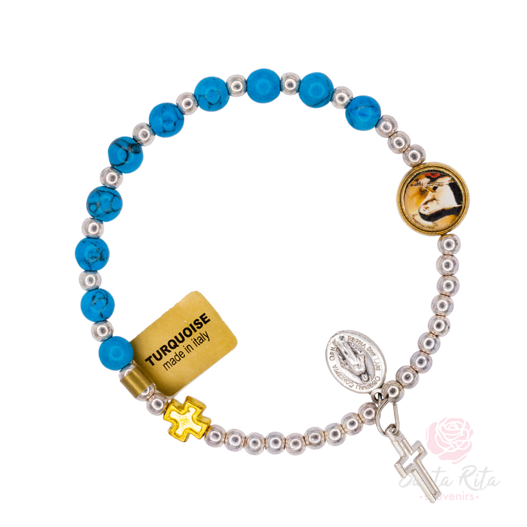 🔵 Bracciale Santa Rita Molla Grani Turchese - Gioiello Religioso Artigianale