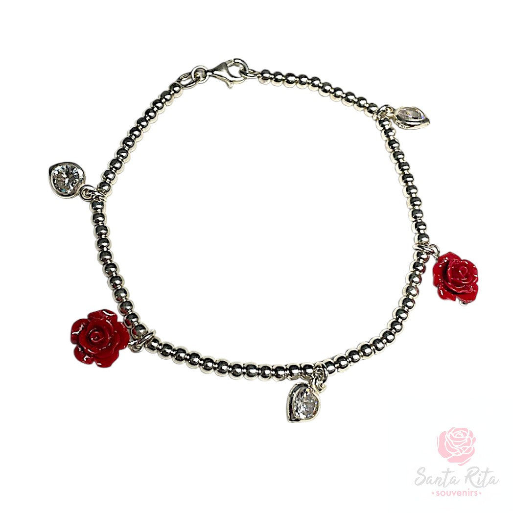 Bracciale Argento 925 2 Rose Pasta Corallo 3 Pietre 21cm