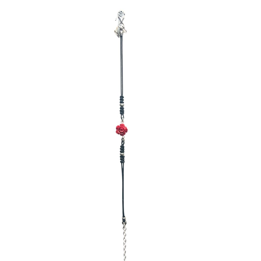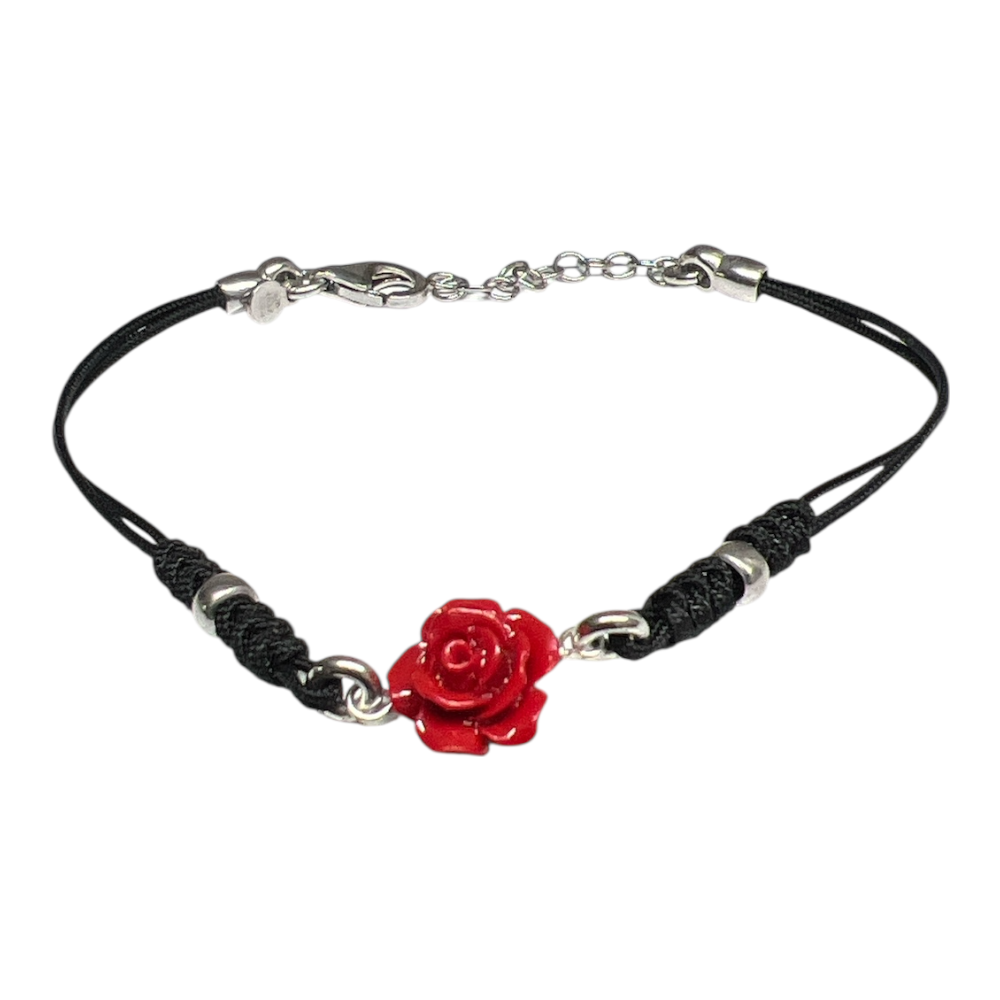 Bracciale Corda Argento 925 Rosa Rossa Pasta Corallo