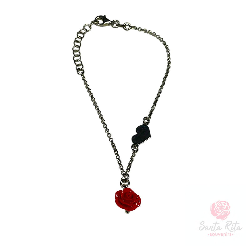 Bracciale Argento 925 Rosa Pasta Corallo Medaglia Cuore