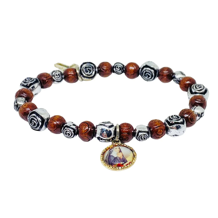 Questo bracciale in legno naturale è realizzato con materiali ecosostenibili che garantiscono durata nel tempo e connessione con la natura. Le roselline decorative richiamano costantemente il miracolo più famoso di Santa Rita, rendendo ogni momento un ricordo di speranza. 🏠
