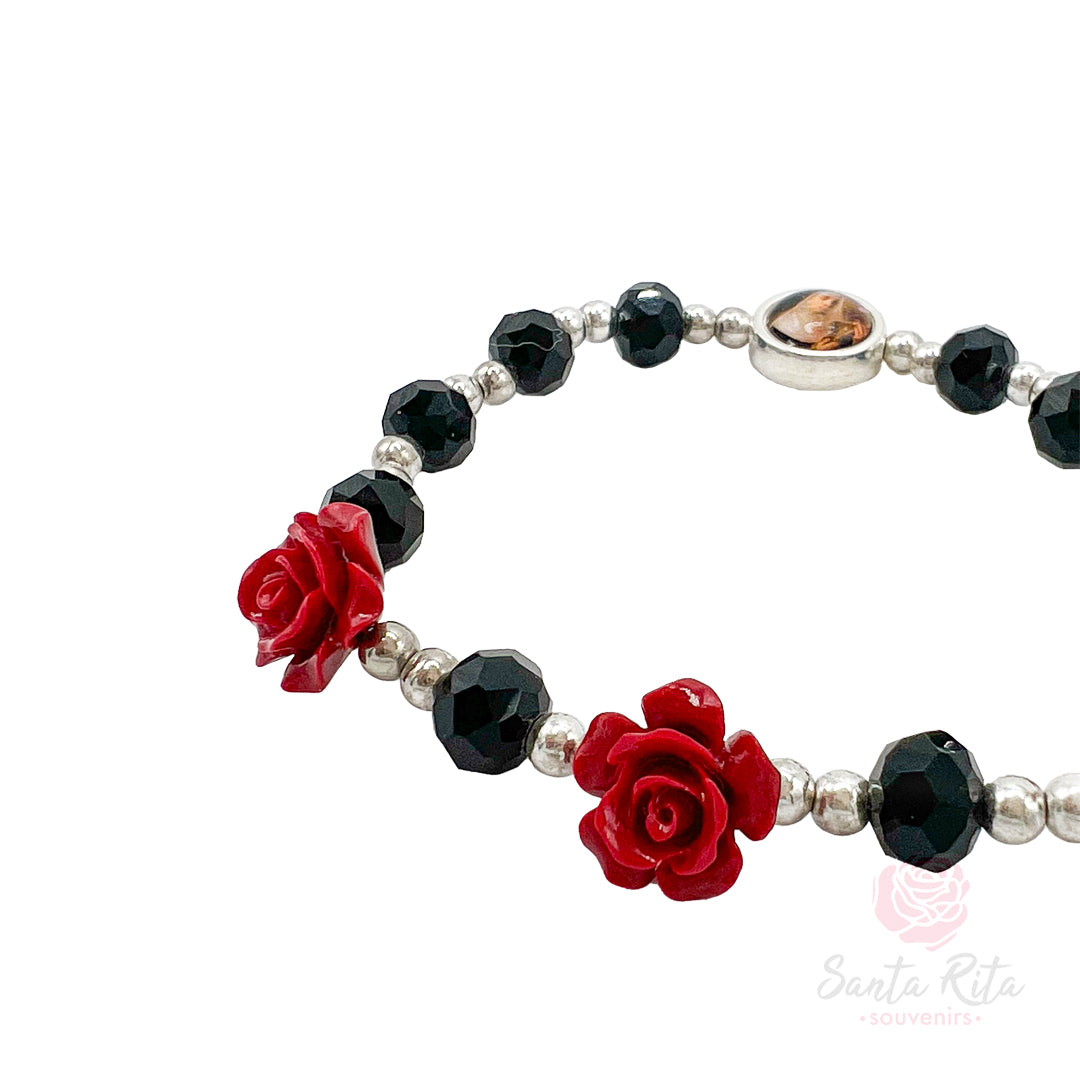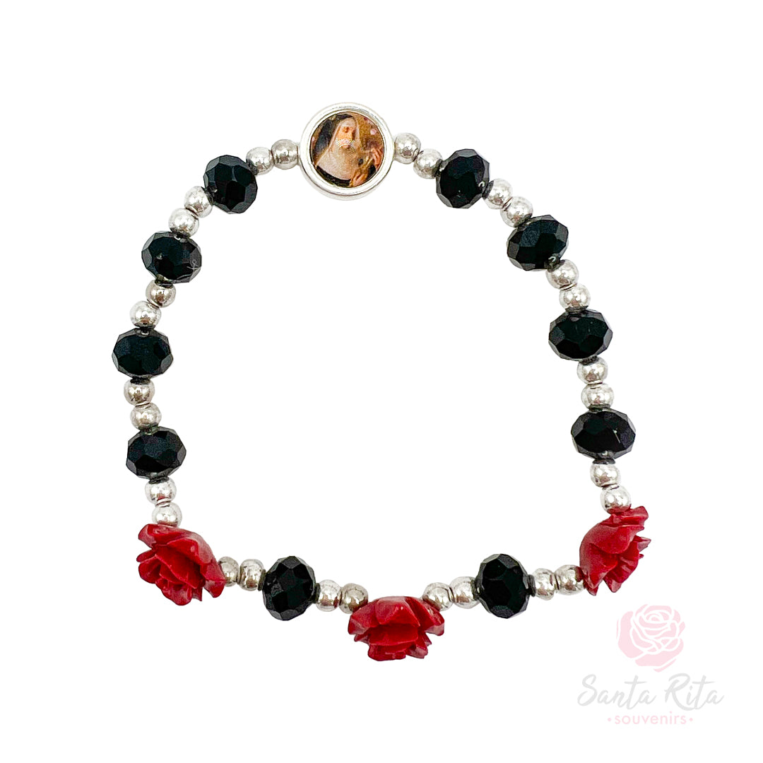 🙏 Bracciale Santa Rita Elastico con Tre Rose - Simbolo di Miracolo