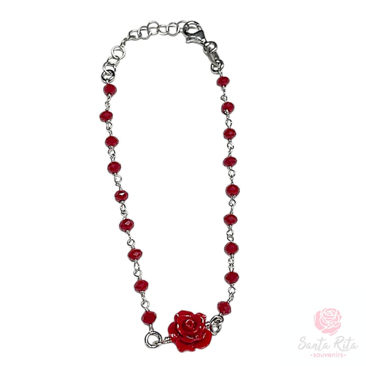 Bracciale Argento 925 Rosa Rossa Pasta Corallo Grani Rossi