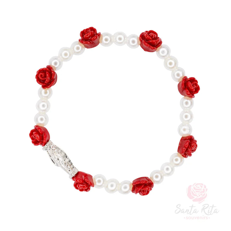 Bracciale Santa Rita Elastico - Mani in Preghiera, Rose e Perle