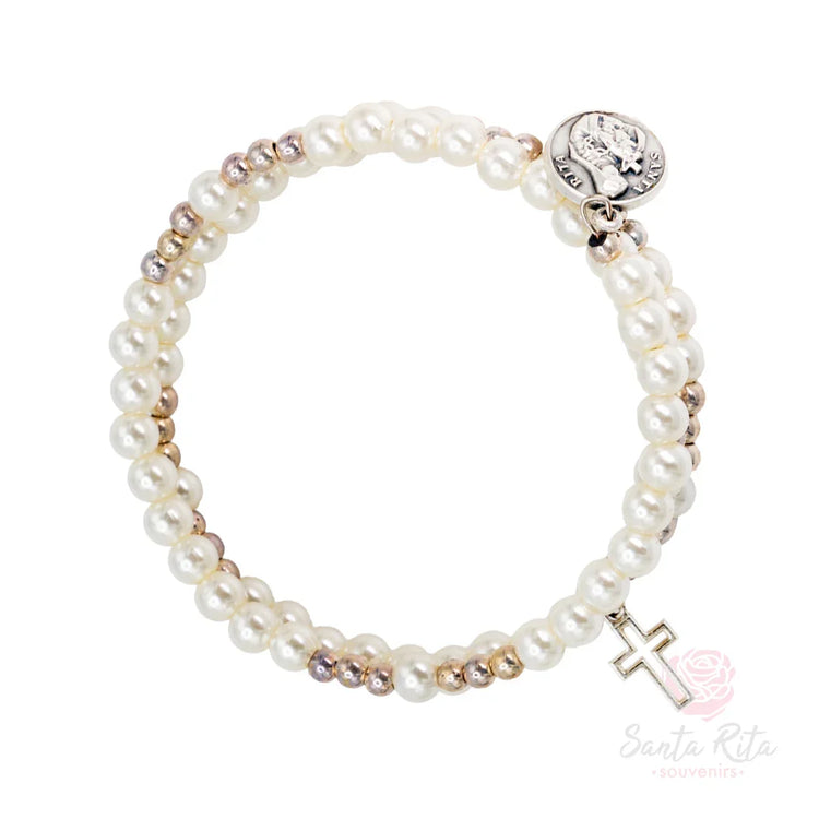 Bracciale Santa Rita a Spirale con Perle Luminose - Artigianato Umbro Autentico