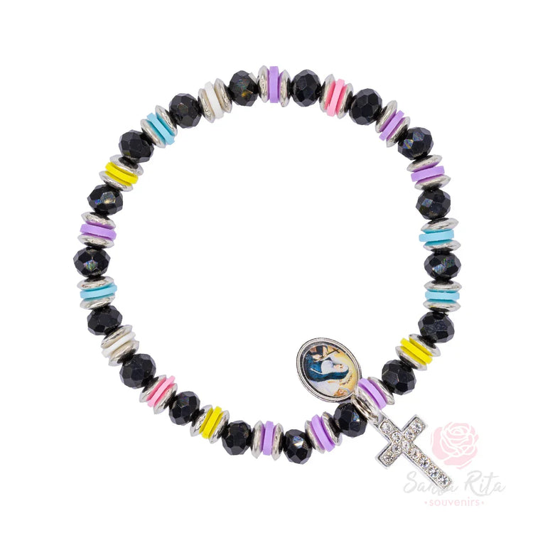 Scopri questo significativo bracciale elastico di Santa Rita con croce pendente e medaglia, autentico gioiello religioso che unisce simbolismo cristiano e design colorato. Un accessorio di fede che porta protezione e speranza in ogni momento della giornata. ✨