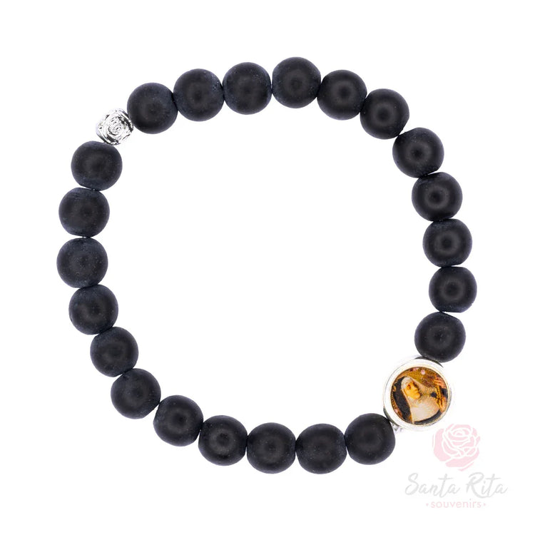 Scopri questo raffinato bracciale Santa Rita in vetro satinato nero, perfetto equilibrio tra sobrietà elegante e profondo significato spirituale. Un accessorio di fede che accompagna ogni giorno con protezione silenziosa e stile discreto. ✨
