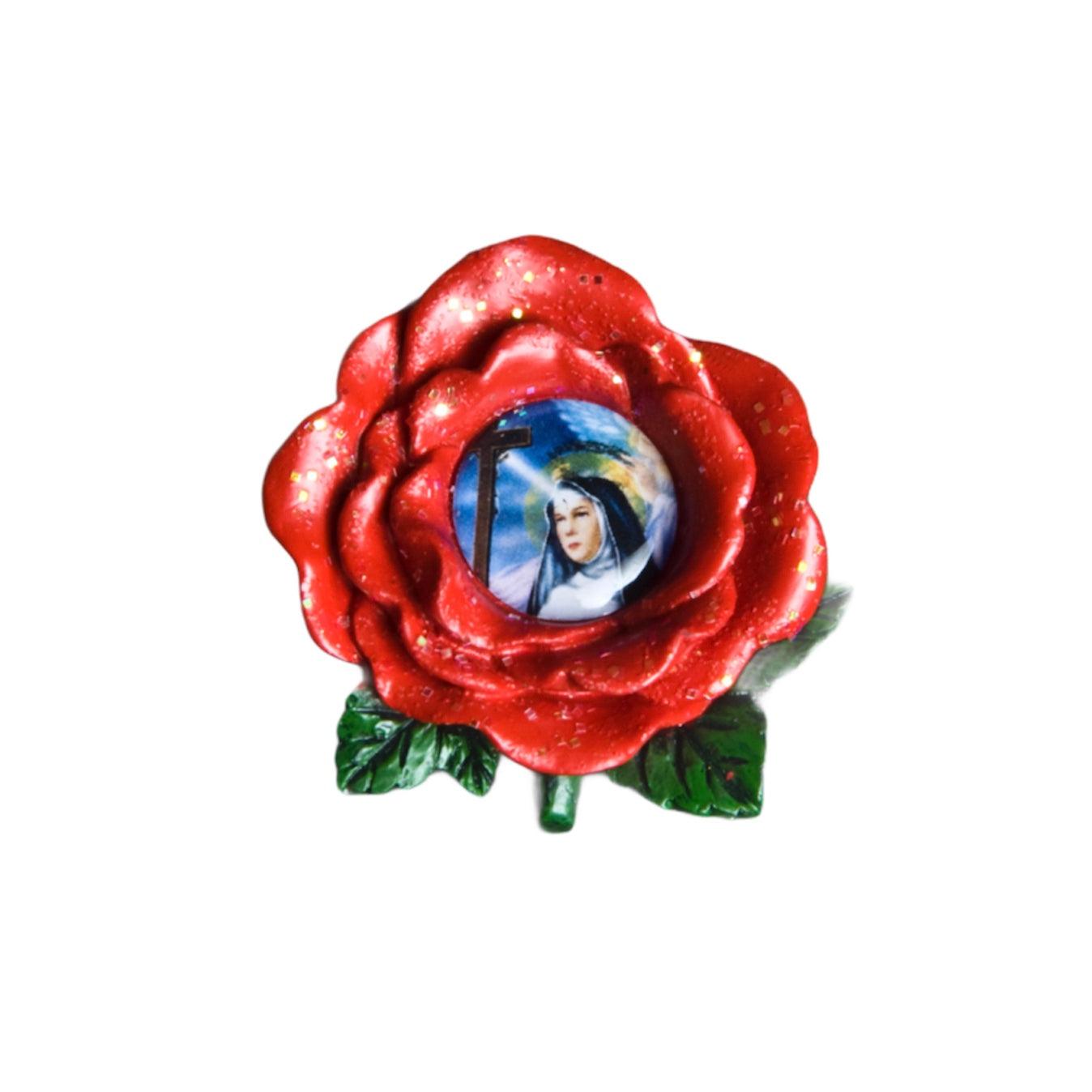 Scopri questa delicata calamita devozionale di Santa Rita in resina a forma di rosa rossa da 3x3cm, perfetto simbolo di fede e speranza da portare sempre con sé. Un magnete religioso che unisce funzionalità quotidiana e spiritualità autentica attraverso il simbolo più riconosciuto della santa. ✨