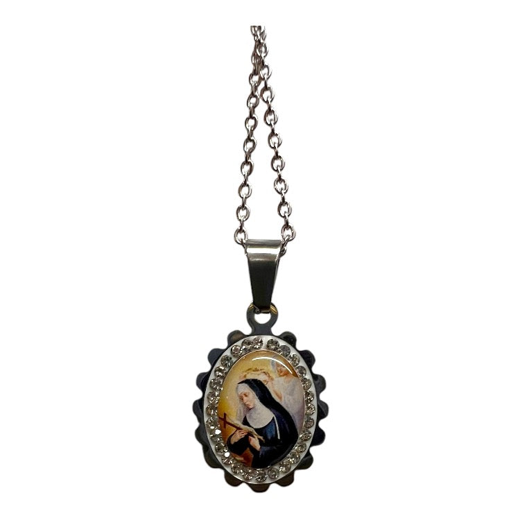 ✨ Collana in Acciaio con Strass di Santa Rita - Gioiello Spirituale Moderno e Brillante