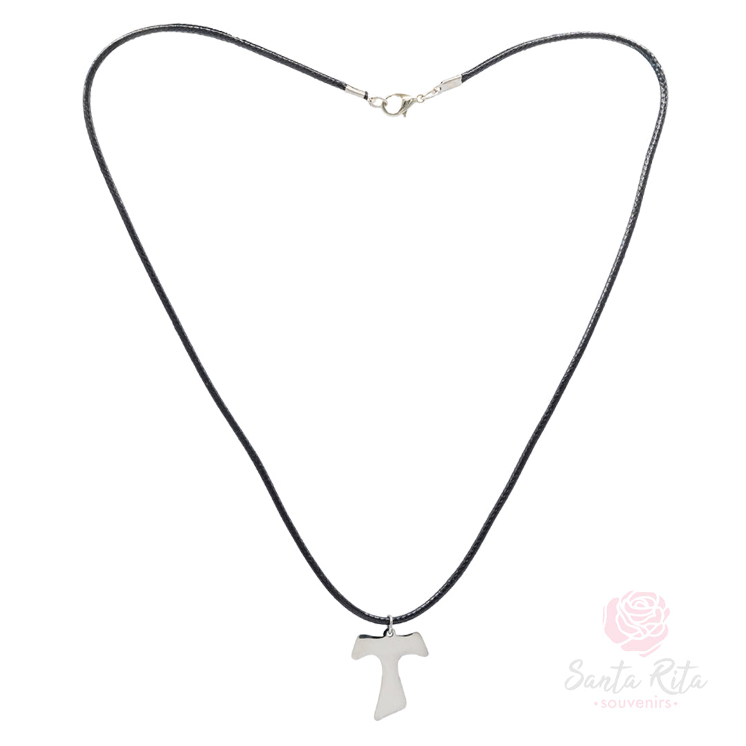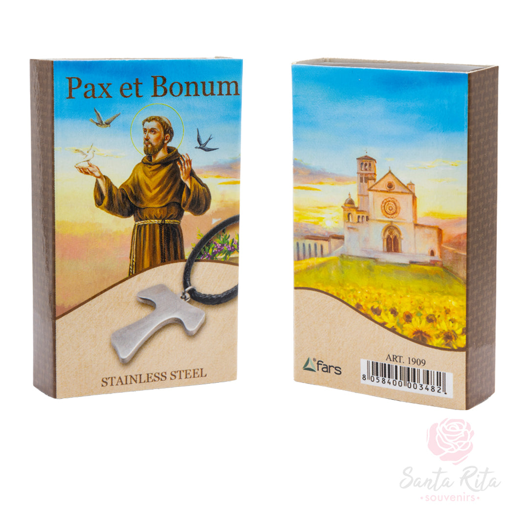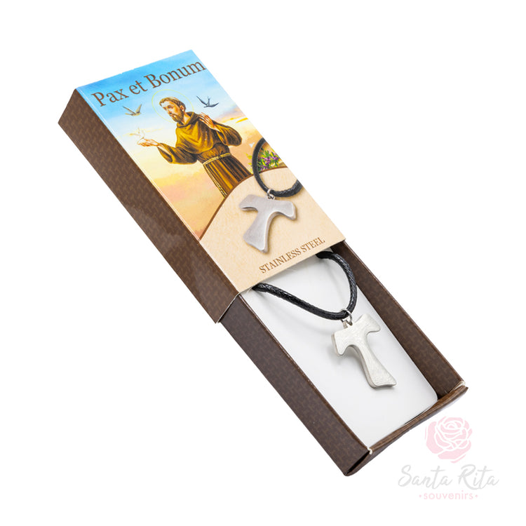 Collana Tau San Francesco Acciaio Inox ✨ Ciondolo Francescano Pax et Bonum con Cordino