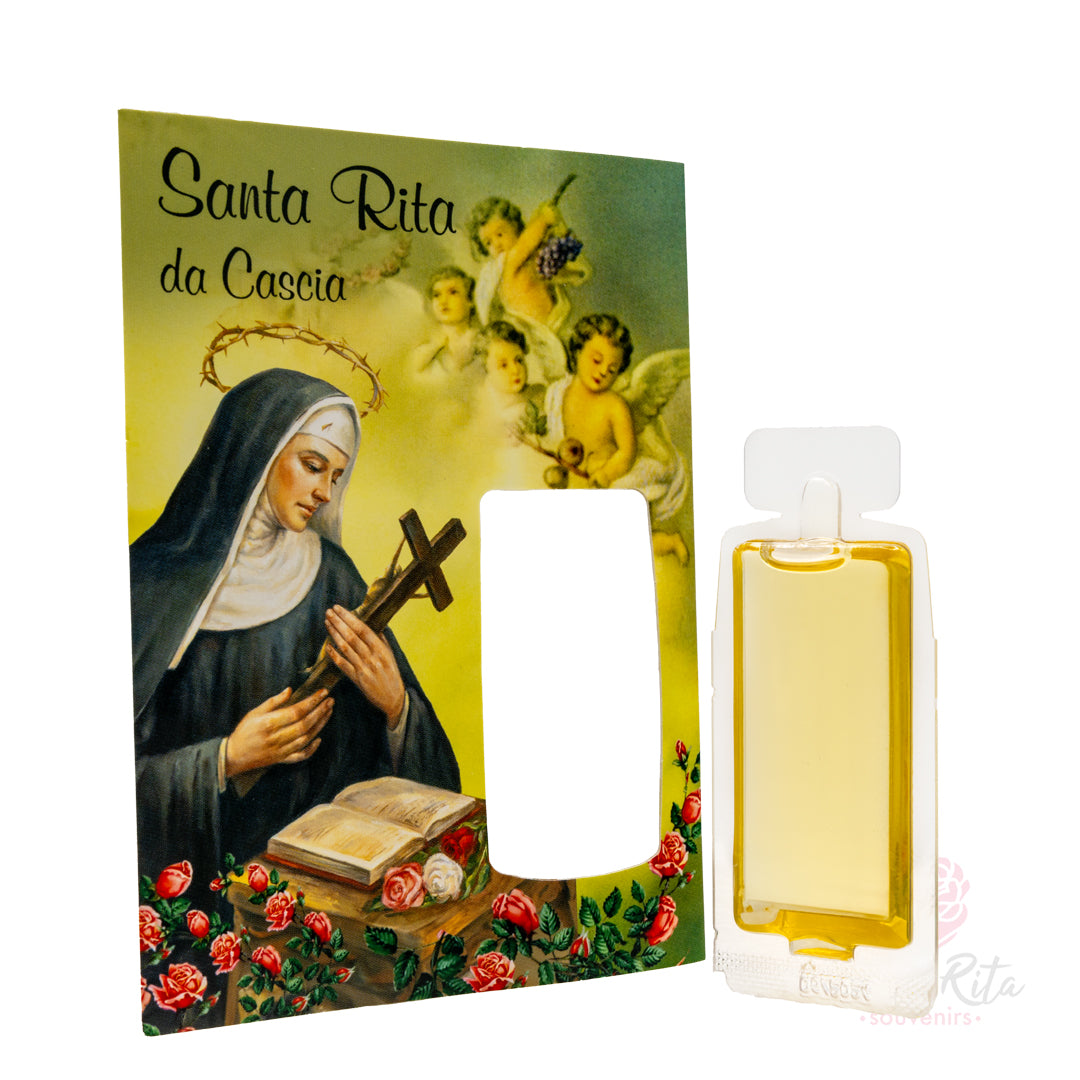 L’olio di Santa Rita è un segno sacro di protezione e speranza, ispirato alla tradizione spirituale di Cascia. Utilizzato in contesti di preghiera o come simbolo di affidamento alla Santa delle cause impossibili, è contenuto in una confezione illustrata con l’effigie di Santa Rita, immersa in un’atmosfera angelica e mistica.