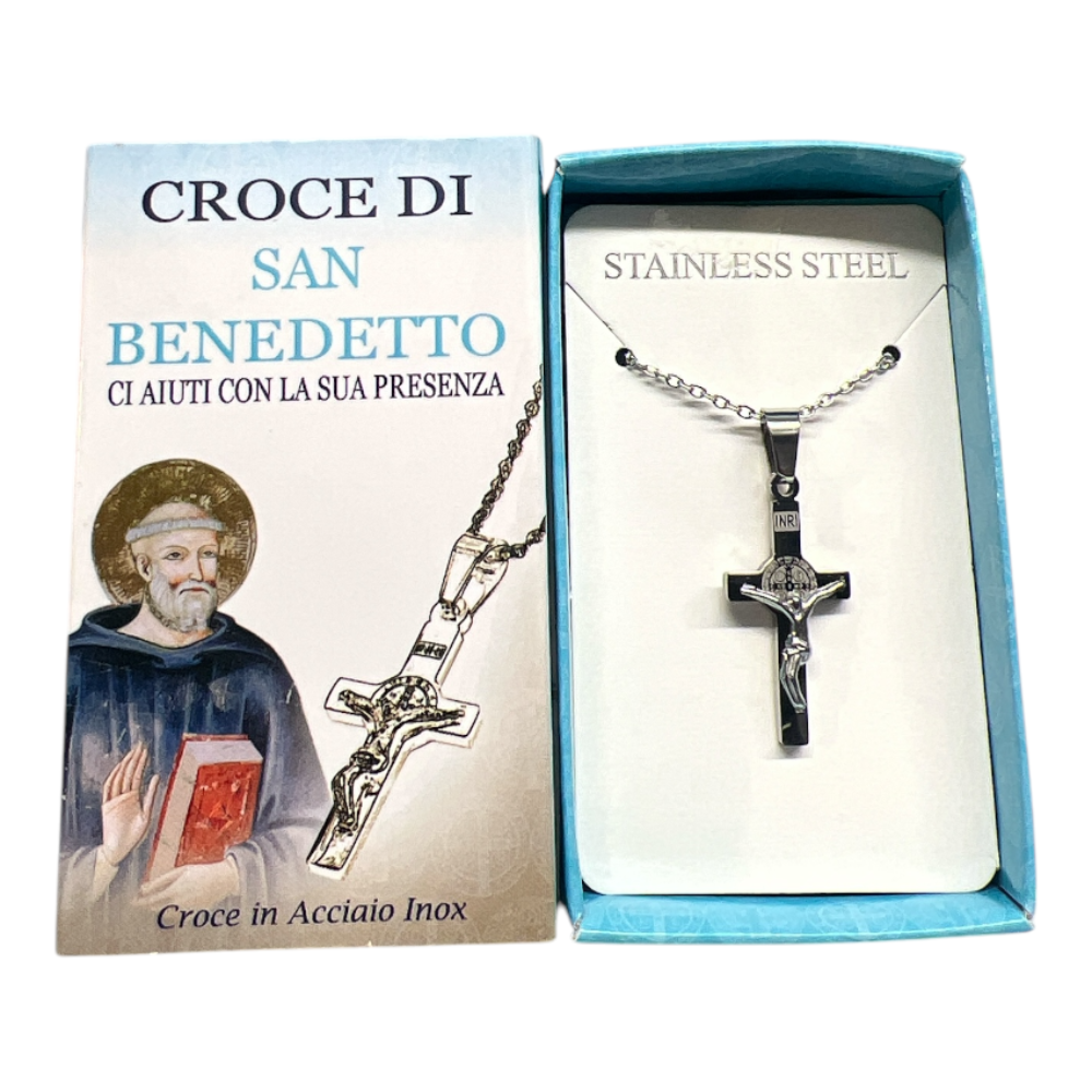 Collana religiosa in acciaio, simbolo di protezione e benedizione quotidiana.