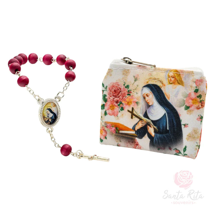 Elegante borsellino in tessuto con decina profumata Santa Rita, perfetto per custodire e proteggere i tuoi oggetti devozionali.