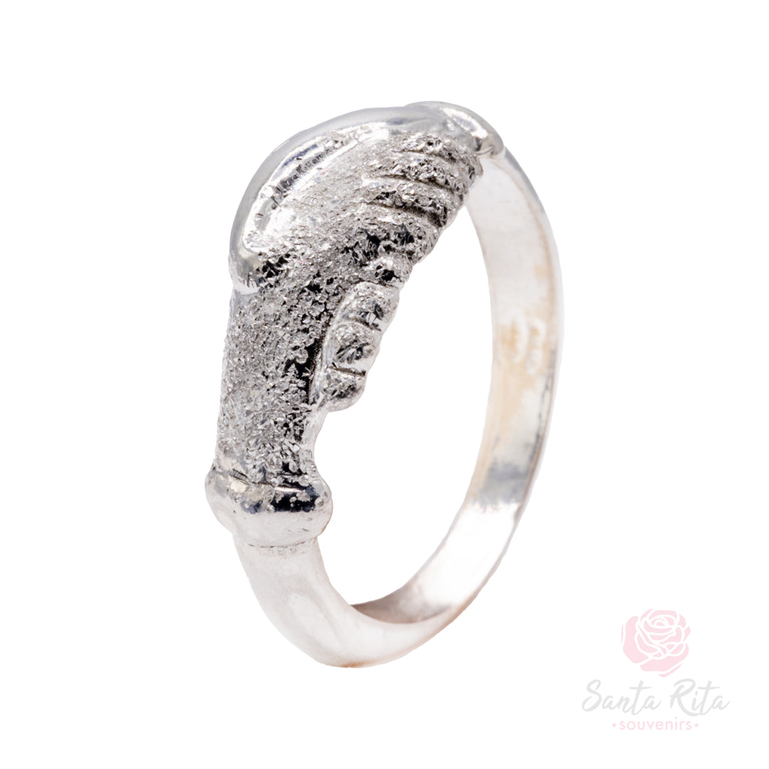 Il motivo centrale delle mani intrecciate rappresenta un gesto di alleanza indissolubile: un patto silenzioso che unisce spirito e cuore, proprio come l’unione tra Santa Rita e il suo sposo, tra la Santa e Dio. Ogni fede viene rifinita con precisione e dedizione, rendendola unica e carica di significato. La brillantezza del taglio diamantato regala un riflesso discreto, adatto sia all’uso quotidiano che alle occasioni solenni.