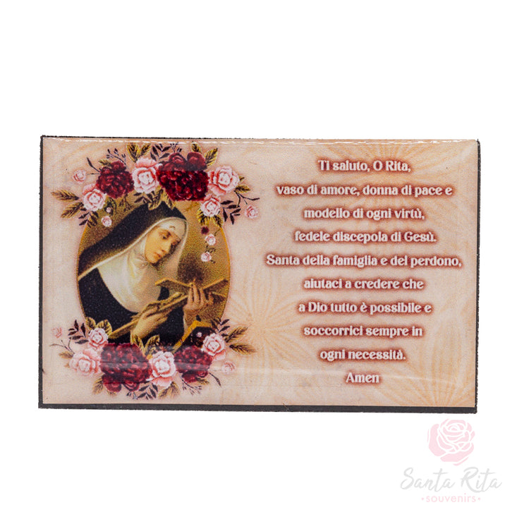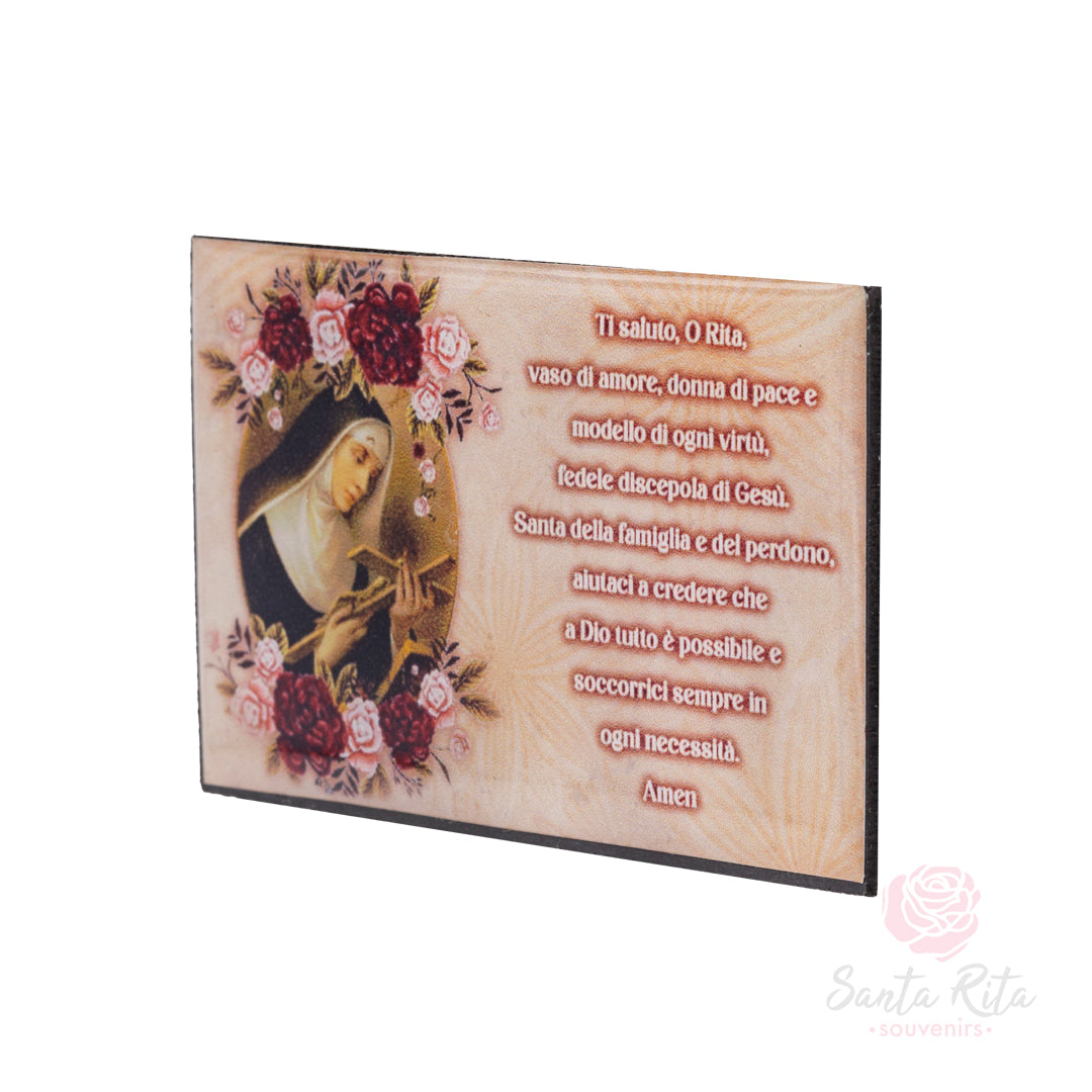 Questa calamita slim raffigura Santa Rita da Cascia con una preghiera ispirata alla sua vita e intercessione. Dimensioni ridotte ma ricca di significato spirituale, ideale da collezionare o donare come piccolo segno di devozione.