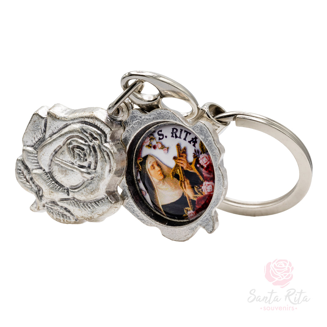🌹 Portachiavi Santa Rita Rosa Apribile - Medaglione Devozionale