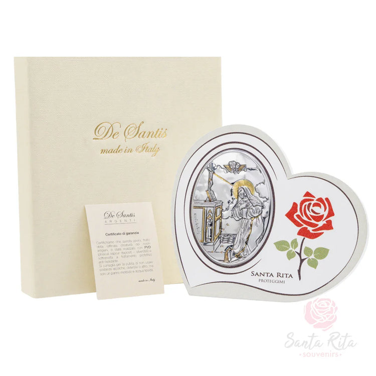 Quadro Santa Rita Legno Cuore Argento 999 PVD Oro Rosa 16x14cm