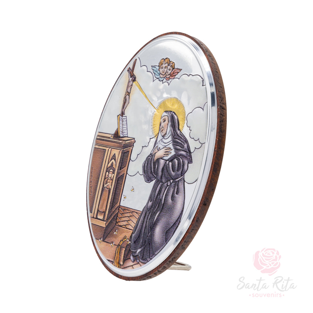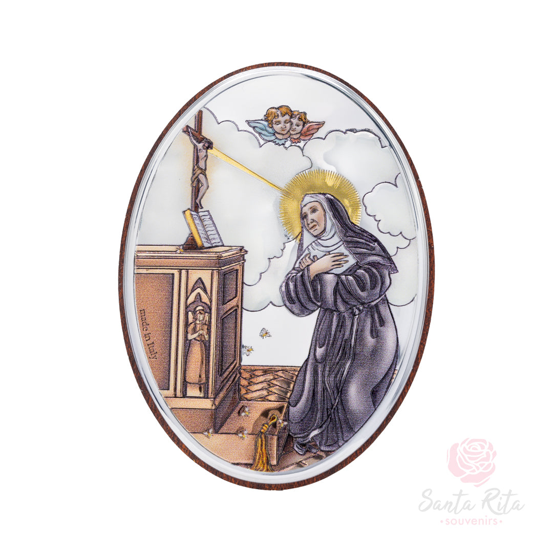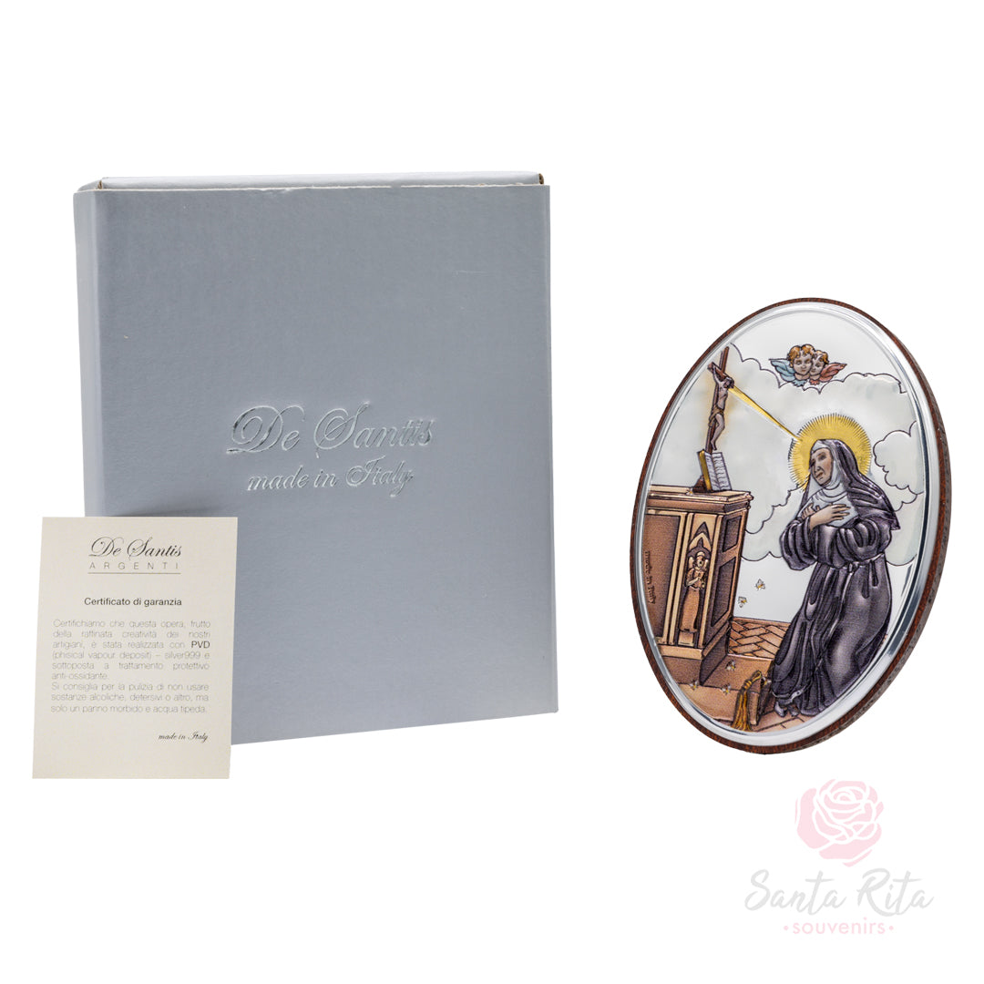 Scopri questo elegante quadretto di Santa Rita bilaminato smaltato formato ovale 7x5cm, autentica icona sacra italiana che unisce brillantezza protettiva e spiritualità autentica. Un'opera di arte religiosa che porta eleganza e devozione in ogni ambiente con finitura superiore. ✨