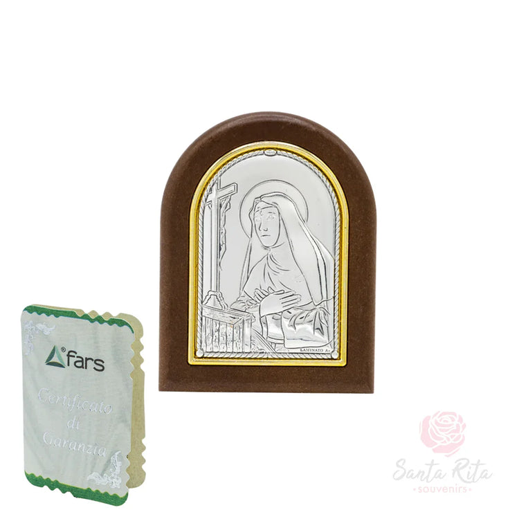Quadretto Santa Rita Placca Argento 999 PVD 7,5x6cm Tavolo