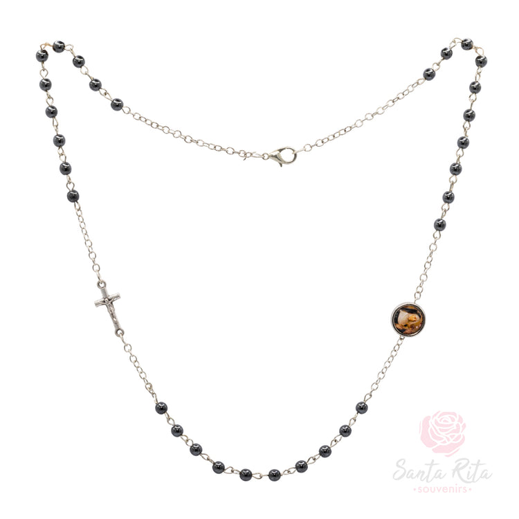 Raffinato rosario girocollo di Santa Rita in acciaio sterling, perfetto per chi cerca un accessorio spirituale moderno, duraturo e anallergico. Gioiello devozionale che unisce tecnologia e tradizione. ✨