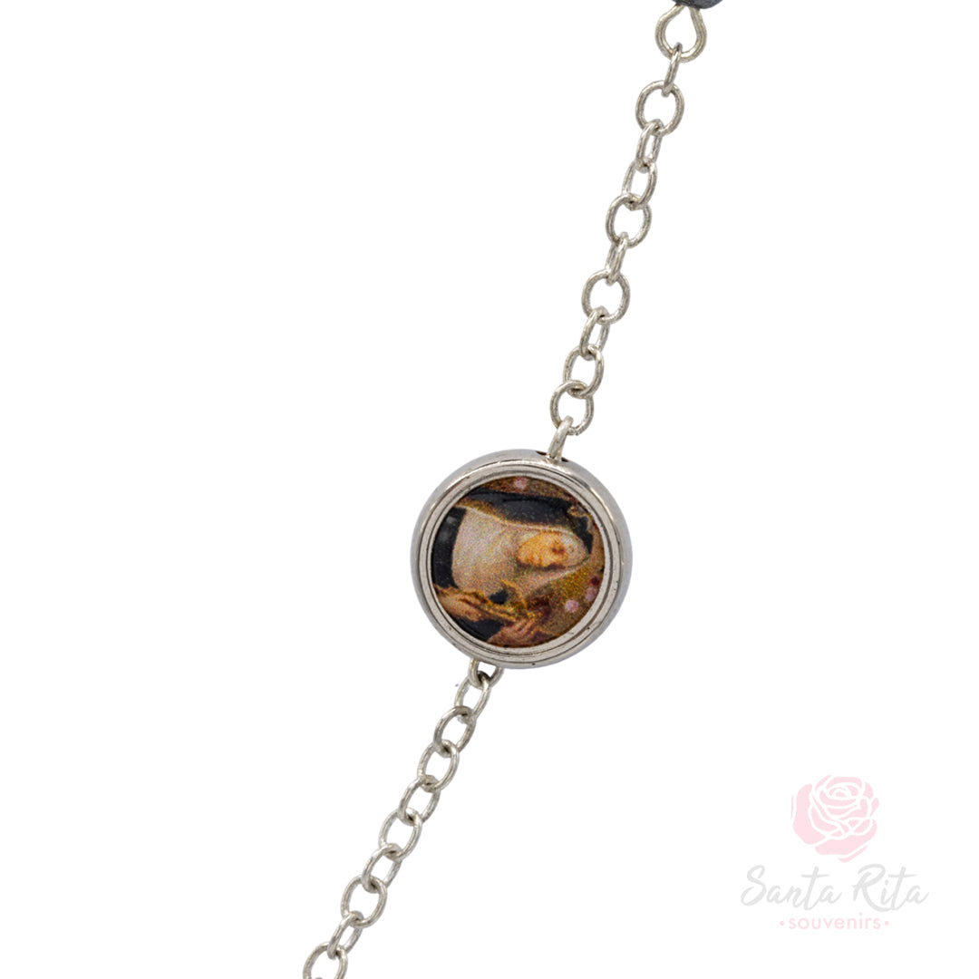 Rosario Girocollo Santa Rita in Acciaio Sterling - Eleganza Duratura Quotidiana