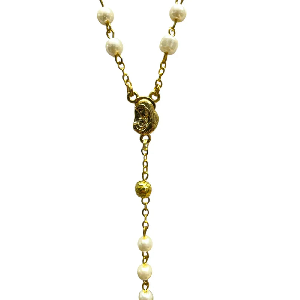 Rosario Prima Comunione Dorato con Grani Effetto Perla - Bomboniera Sacramentale
