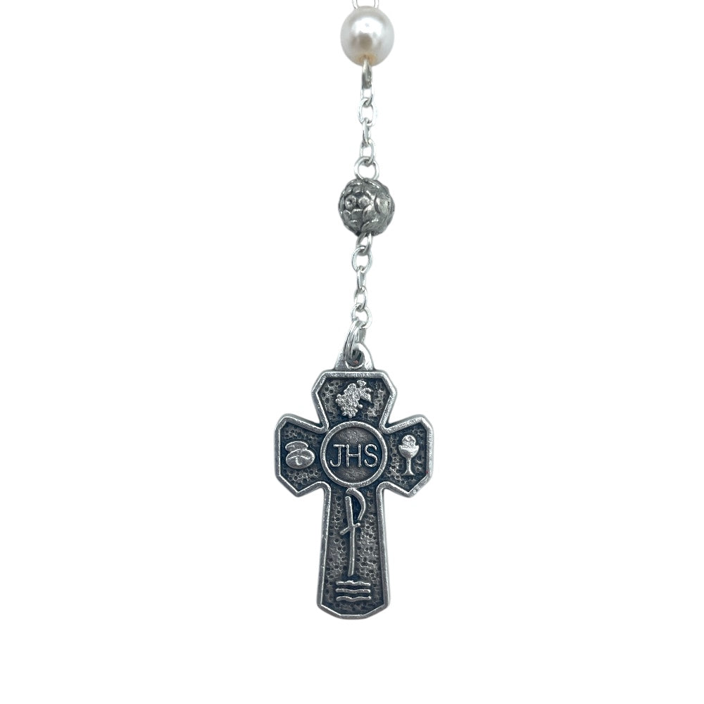 Rosario Prima Comunione con Astuccio Ricamato Grani Perla