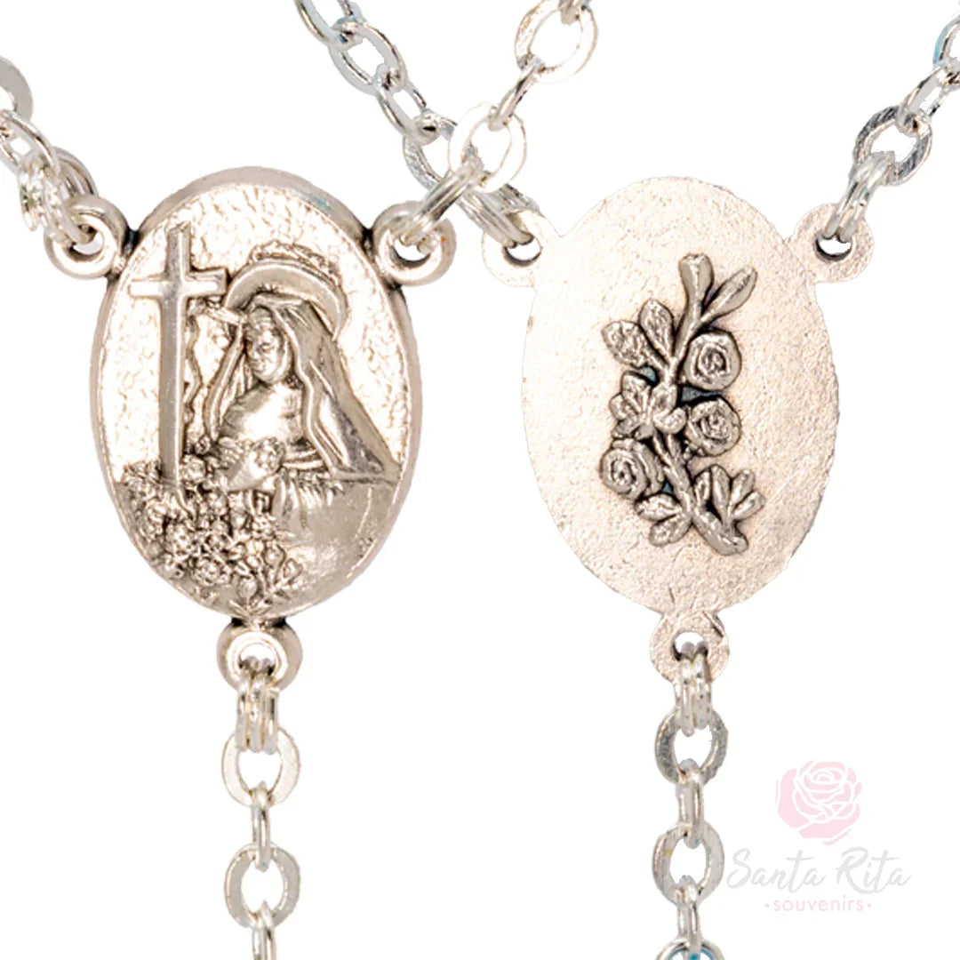 Il mezzo cristallo conferisce al rosario trasparenza e purezza, simboleggiando la chiarezza della fede e l'intercessione di Santa Rita. Perfetto per la preghiera personale quotidiana, per momenti di raccoglimento spirituale o come dono religioso ricco di significato per occasioni speciali.