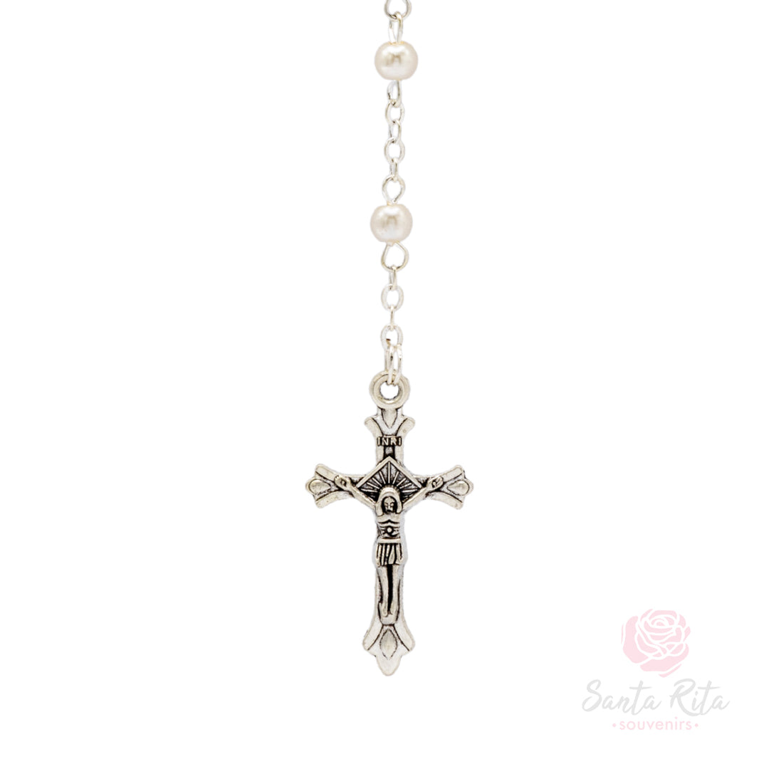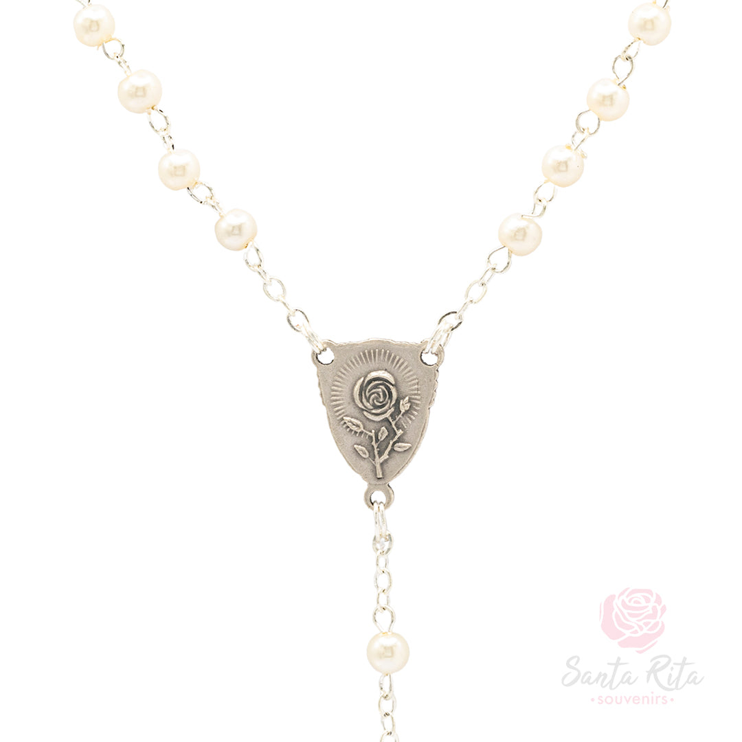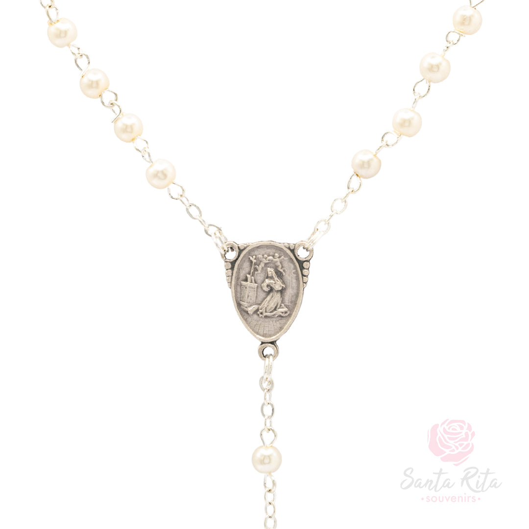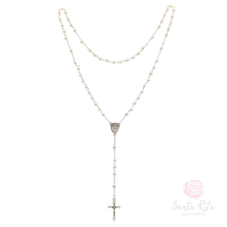 ⚪ Rosario in Acciaio con Grani Perla 3mm - Eleganza Moderna e Resistenza Superiore