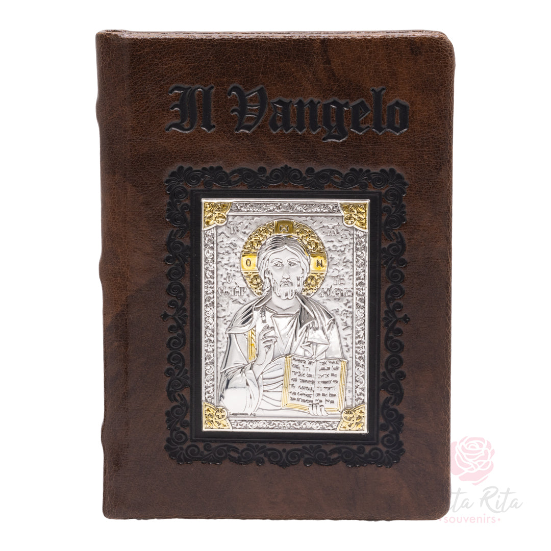 Vangelo in Pelle con Lamina Argento Artigianale Made in Italy