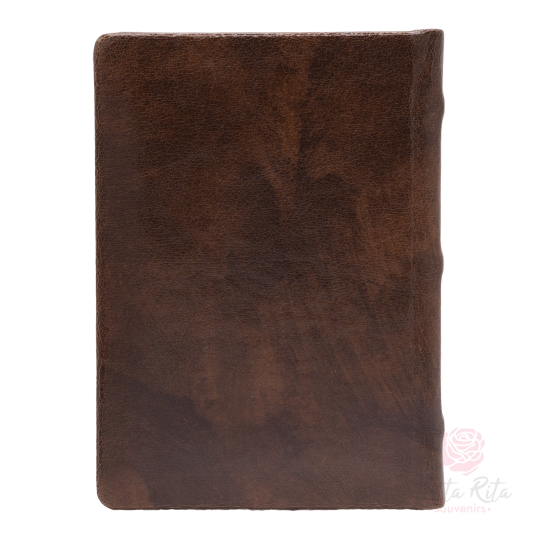 Dimensioni compatte 14 x 10,5 cm, perfette per essere portate sempre con sé in borsa o per la preghiera quotidiana. La pelle naturale offre una piacevole sensazione al tatto, mentre la lamina in argento dona eleganza e valore all'oggetto sacro.
