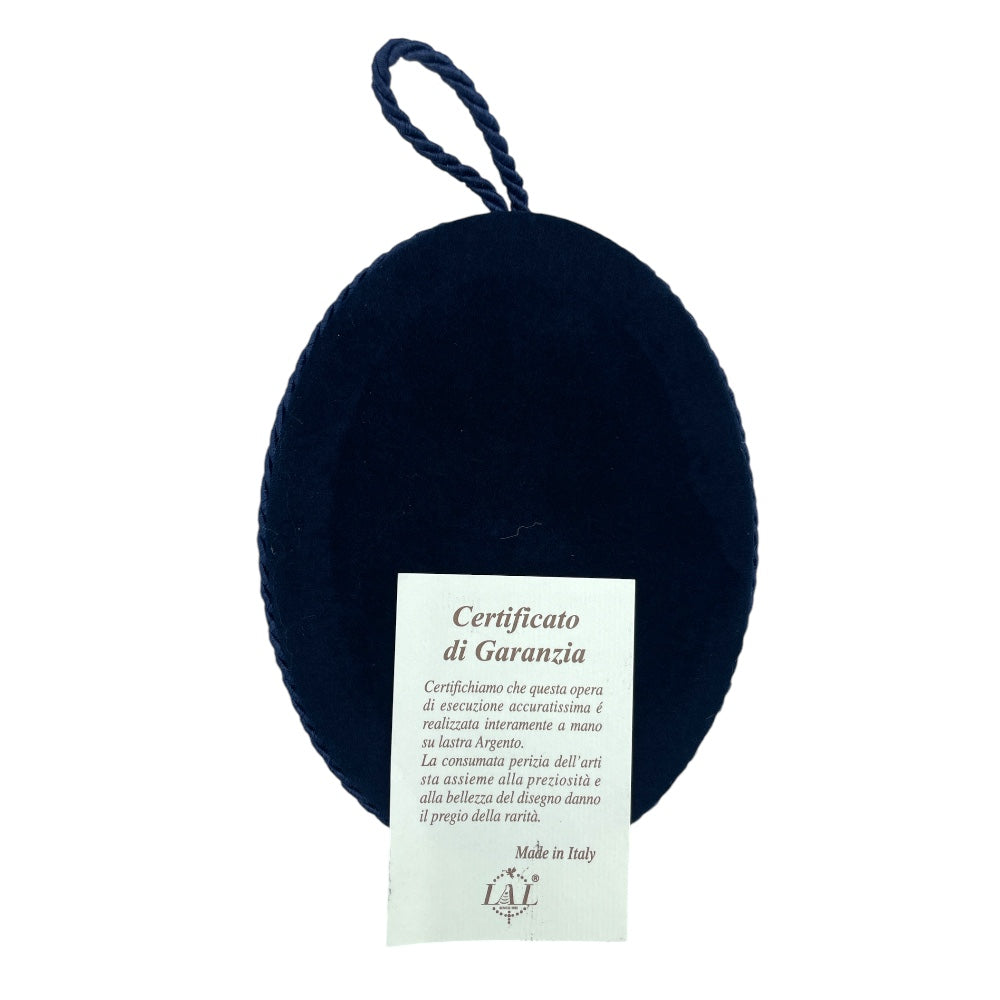 Cuore votivo artigianale realizzato in Italia, simbolo tradizionale di gratitudine per una grazia ricevuta. Unisce velluto pregiato e argento dorato finemente lavorato.