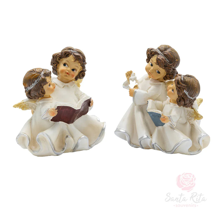Set 2 Coppie Angeli Bambini in Resina Dipinti a Mano - 8cm