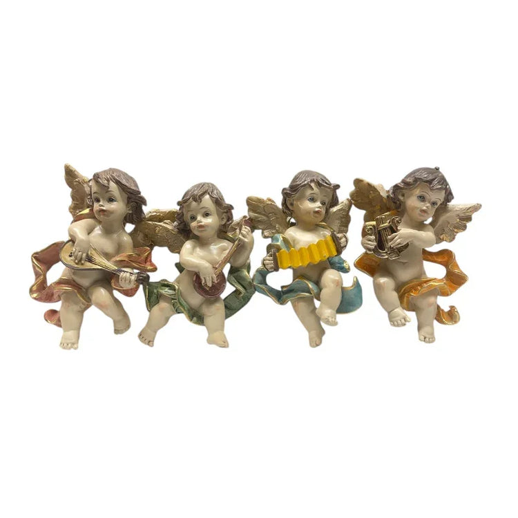 Set 4 Angeli Musicanti Resina Dipinti a Mano - Decorazione Religiosa Bambini