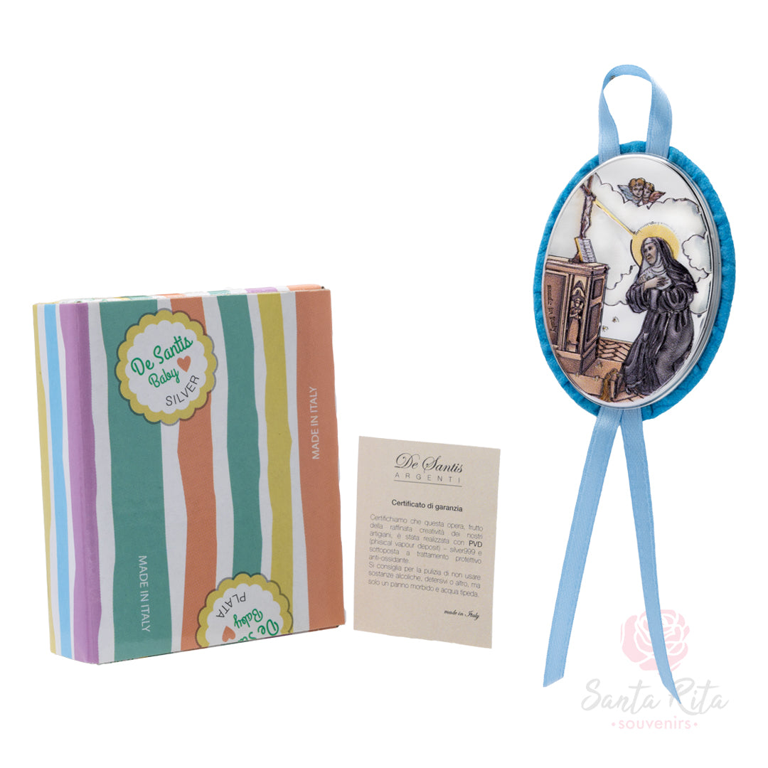 👶 Sopraculla Santa Rita Azzurro Carillon Bilaminato Smaltato - Protezione per Maschietti