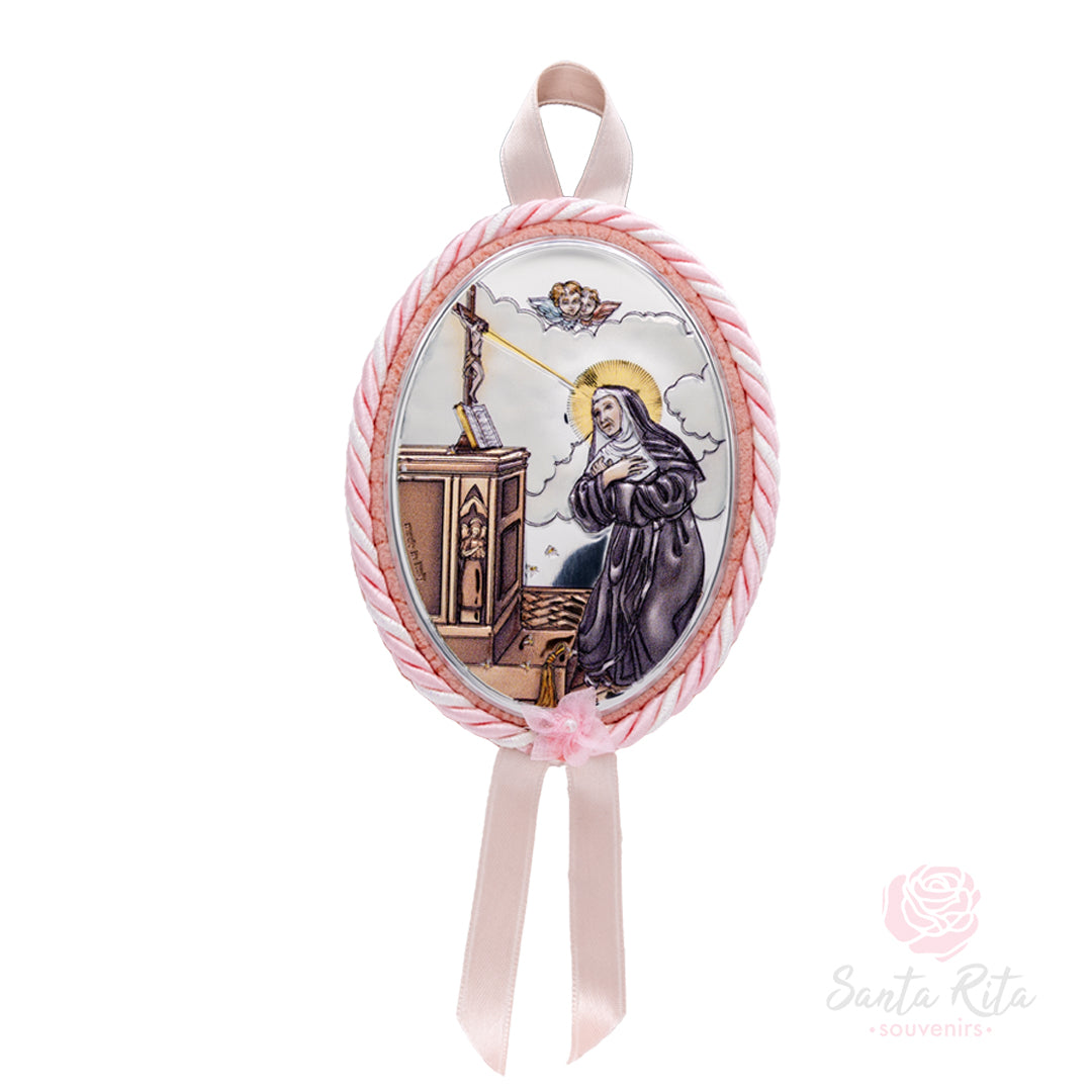 Sopraculla Santa Rita rosa con carillon – in bilaminato smaltato
