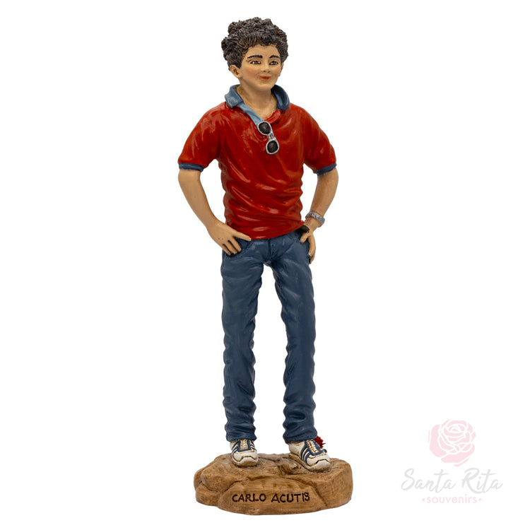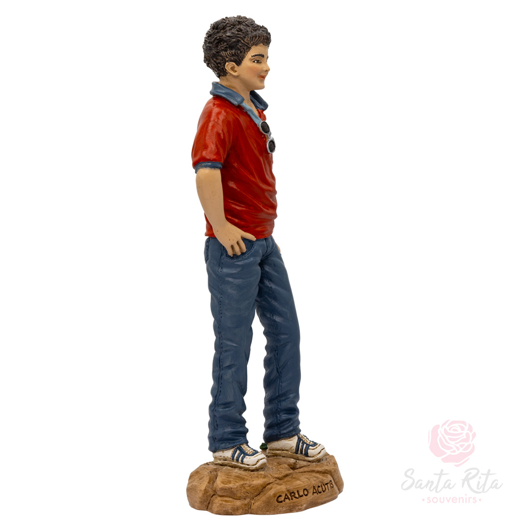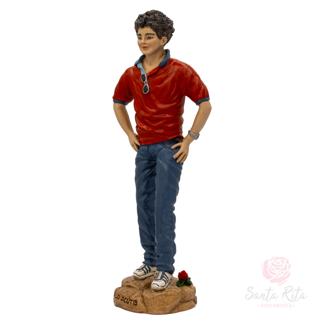 Scultura San Carlo Acutis 22cm Maestro Cassetta Resina Marmo Dipinta Mano