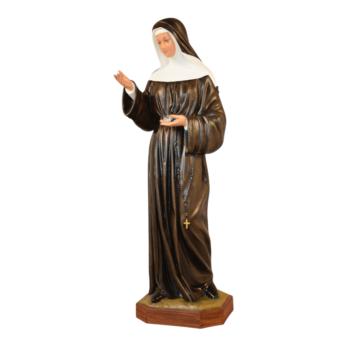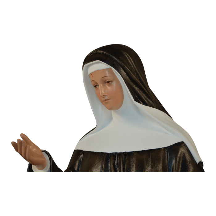 Scopri questa straordinaria statua di Santa Rita da Cascia alta 130cm, realizzata in vetroresina resistente e dipinta ad olio da maestri artisti italiani. Un'opera d'arte sacra di qualità museale che porta spiritualità e bellezza in ogni ambiente liturgico.