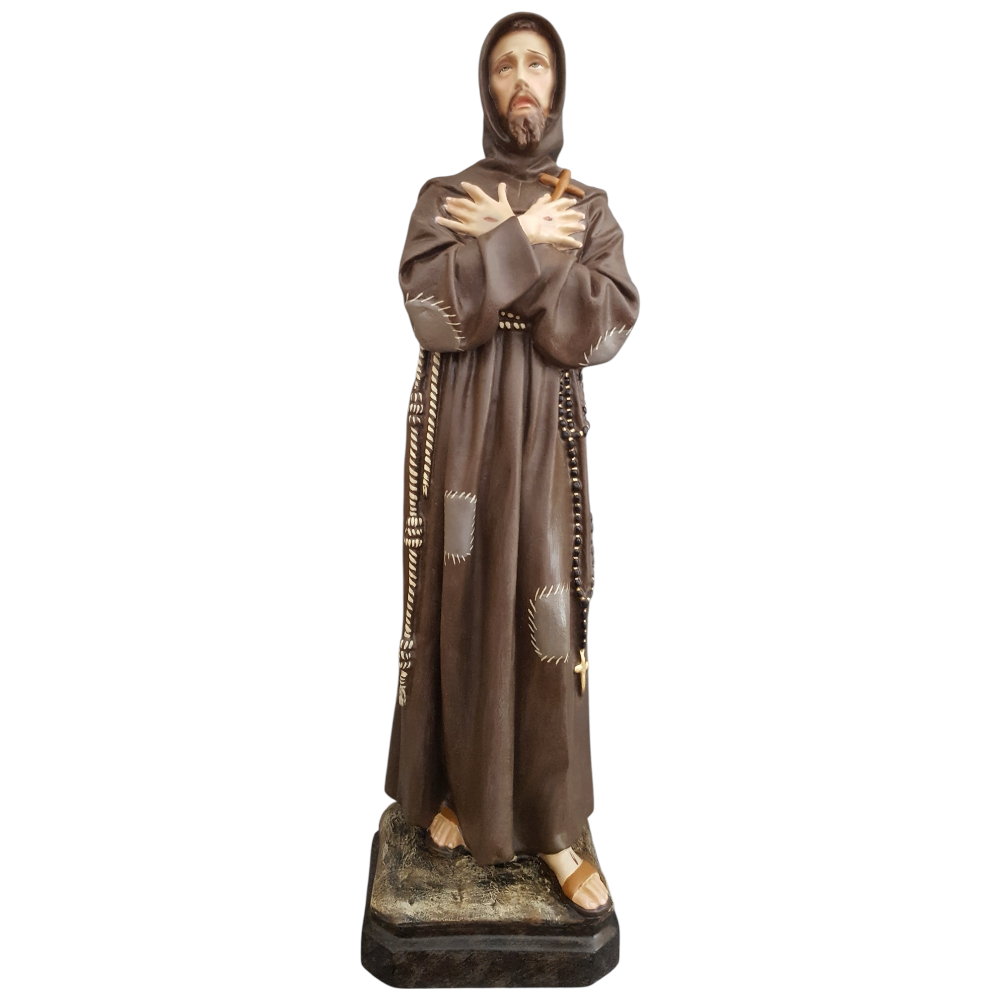 Statua San Francesco d'Assisi 50cm Resina Piena Dipinta a Mano Olio