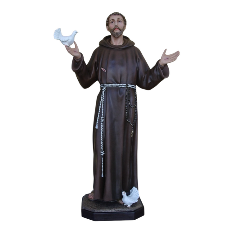 Statua San Francesco Braccia Aperte Colombe Vetroresina Occhi Vetro 170 cm