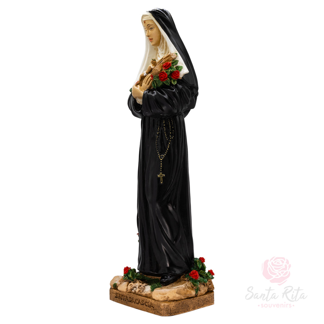 Scultura Santa Rita Rose e Croce 42cm Maestro Cassetta Resina Marmo