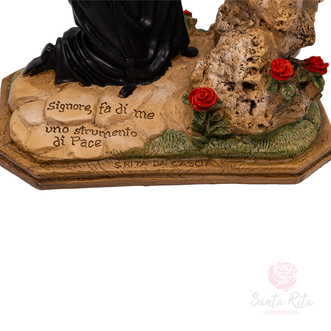 Scultura Santa Rita in Ginocchio Crocifisso 27cm Maestro Cassetta Resina Marmo